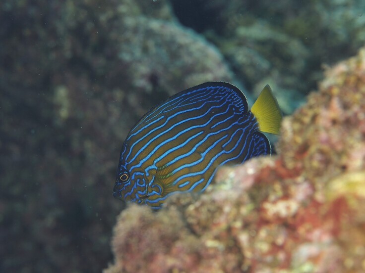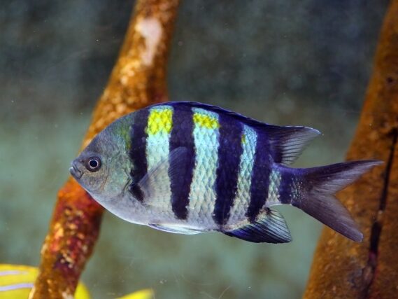 濃い青色と黄色のラインが特徴。青が濃いものや黄色が濃いものなど、個体によってさまざまです。